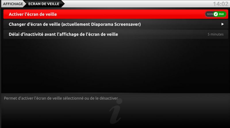 Une fois dans cette rubrique, il est possible d’activer cet écran de veille et de choisir le délai au-delà duquel il s’active automatique si vous n’avez pas d’interaction avec votre Freebox. Mais il est également possible de “changer l’écran de veille”