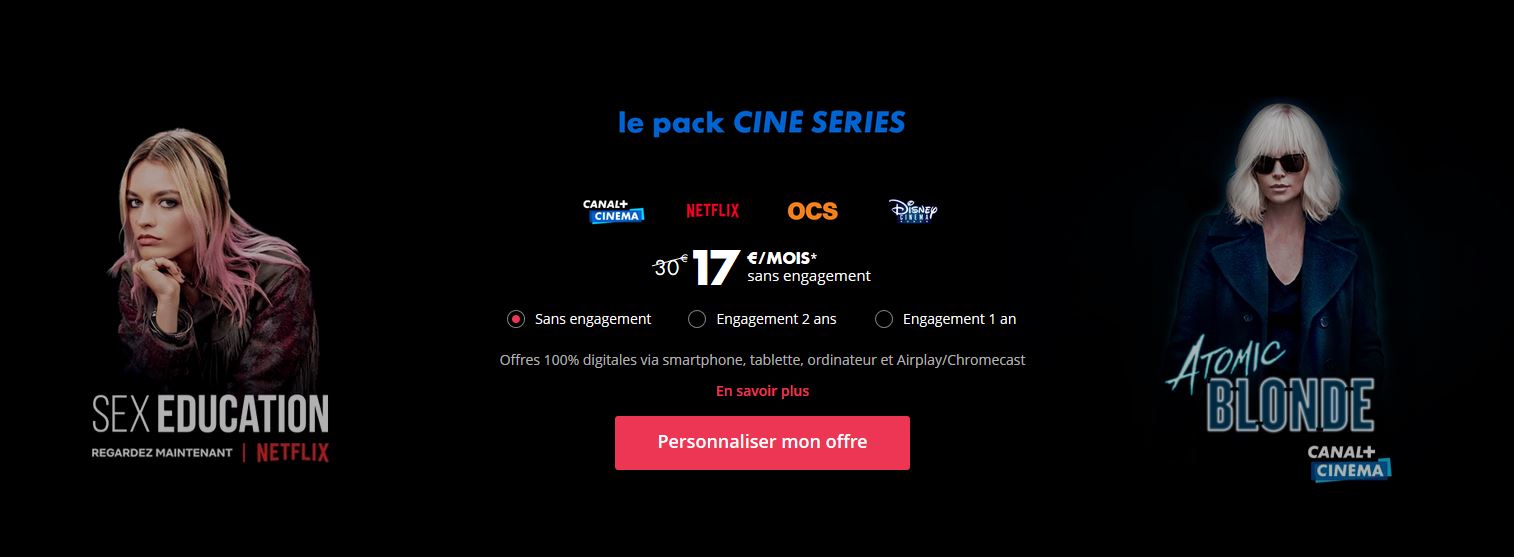 En octobre dernier, Canal+ a lancé sa nouvelle offre Ciné Séries incluant Netflix, avec un tarif promotionnel de 15€ pour tout nouvel abonnement. Le tarif promotionnel a augmenté de deux euros, passant donc à 17€ par mois, au lieu de 30€, pour toutes les offres avec ou sans engagement.