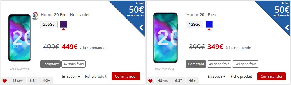 Elle concerne donc les deux smartphones de la marque Honor : le Honor 20 et le Honor 20 Pro. Vous pouvez ainsi bénéficier d’un remboursement de 50€ sur ces deux smartphones une fois le formulaire envoyé. Cette offre de remboursement est valable jusqu’au 27 février prochain.