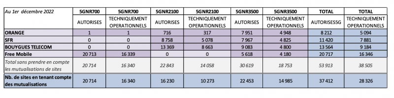 L’ANFR dévoile son observatoire mensuel du déploiement des réseaux 5G des opérateurs pour le mois de novembre 2022. Free Mobile déploie moins sur la bande 700 MHz et se voit de plus en plus distancer sur la fréquence 3,5 GHz.