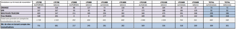 Le bilan des sites 4G mis en service en métropole s’établit comme suit :