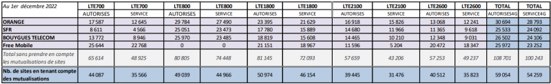 L’ANFR a publié les chiffres de déploiement des réseaux mobiles 4G/3G au 1er décembre.