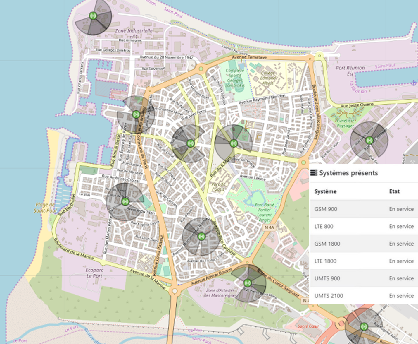 Découvrez la répartition des antennes Free Réunion 3G/4G sur la commune du Port