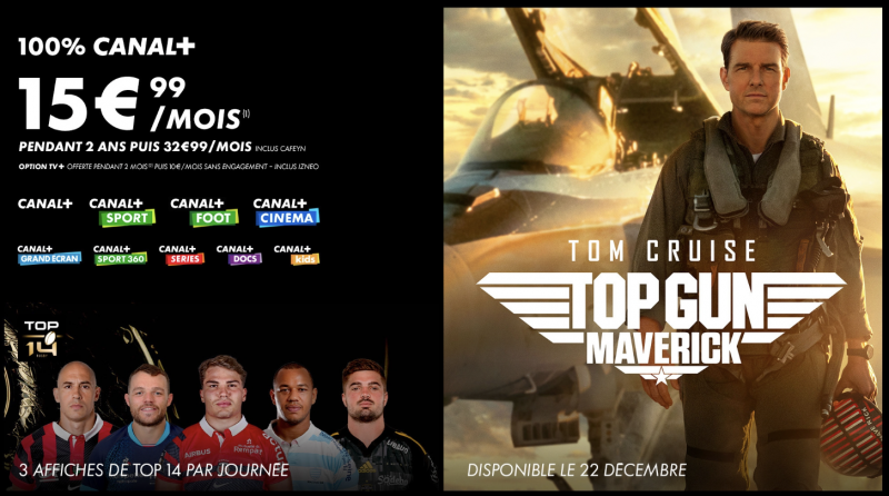 Canal+ continue de faire les yeux doux aux fans de sport et de cinéma cette semaine en lançant une promo sur son offre 100% Canal+, directement sur le site d’e-commerce Veepee. Celle-ci propose l’intégralité de ses 9 chaînes (Canal+, Canal+ Sport, Foot, Sport 360, Cinéma, Grand Ecran, Docs, Kids et Séries) pour 15,99€/mois pendant 2 ans puis 32,99€. L’offre est disponible jusqu’au 19 décembre. A titre de comparaison, le groupe avait lancée une promo en novembre sur son bouquet à 20.99€/mois pendant 12 mois puis 30.99€/mois.