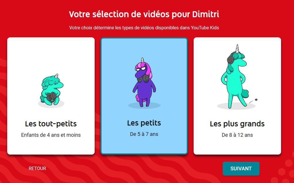 Une fois le profil créé, vous pouvez le configurer à votre guise. On vous proposera d’ailleurs directement de sélectionner une tranche d’âge correspondant au contenu accessible pour votre enfant.