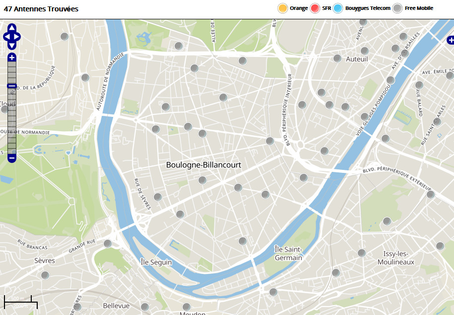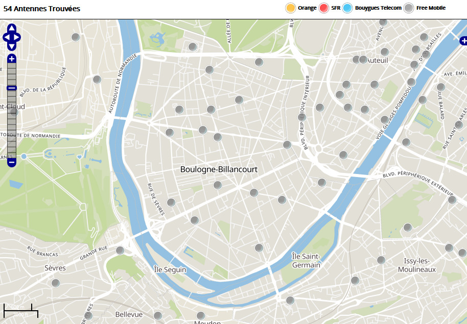 Découvrez la répartition des antennes mobiles Free 3G/4G sur Boulogne-Billancourt