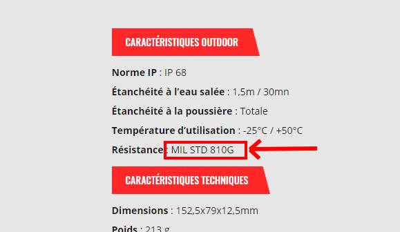 L’aspect des smartphones et leurs descriptions donnent un petit indice. Au départ pensée pour les appareils militaires, avant de concerner les appareils destinés au grand public, la certification MIL-STD-810G vient en fait confirmer l’aspect robuste. Reposant sur des tests réalisés en laboratoire, elle indique que l’appareil est prévu pour des conditions allant au-delà de l’usage classique.