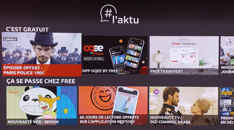 Sur les différentes Freebox, Free informe les abonnés de l’actualité de Freebox TV et de Free en général dans la rubrique Aktu Free. Celle-ci vient d’évoluer et a revu entièrement le “rubriquage”.