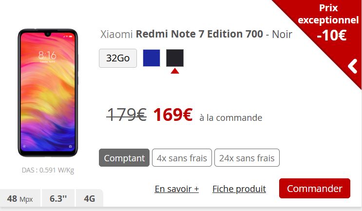 Le prix du smartphone avait déjà été revu à la baisse en décembre dernier avec l’arrivée de son successeur dans la boutique de l’opérateur, passant de 199€ à 179€. Le Redmi Note 7 dans sa version compatible avec la bande-fréquence 700 MHz voit une nouvelle promo lui être appliquée, de 10€.