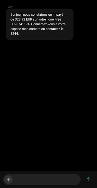 Voici l’histoire d’un abonné Freebox et Free Mobile que nous appellerons Bertrand. Venu jeudi matin à notre lieu d’accueil situé, il ne comprend pas un SMS récemment envoyé par le 21010. “Bonjour, nous constatons un impayé de 328,92 EUR sur votre ligne Free FOxxxxxxxx. Connectez-vous à votre espace mon compte ou contactez le 3244”, indique la missive. Il aurait un impayé sur son abonnement Freebox. Un joli coup de pression après les fêtes et en période de soldes.