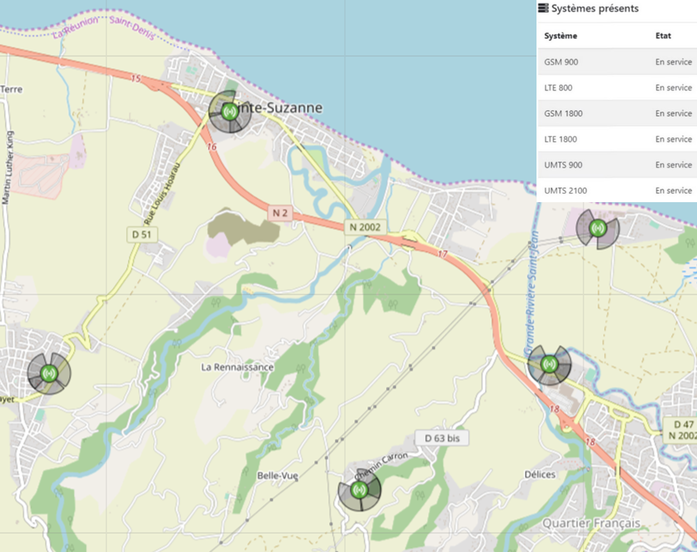 Découvrez la répartition des antennes Free Réunion 3G/4G sur Sainte-Suzanne