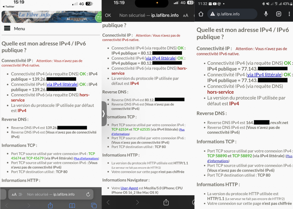 Pour rappel, dans la plupart des cas l’activation du protocole IPv6 n’est pas automatique. Sur Android il faudra modifier les APN et mettre le protocole APN sur iPv4/iPv6. Sur iOS il faudra surement attendre une mise à jour du constructeur.