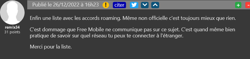Plus de 70 destinations en itinérance 4G et désormais 41 en 5G, le forfait 210 Go de Free Mobile permet aux abonnés de voyager dans de nombreuses destinations grâce à son enveloppe data de 25 Go/mois. Pour sa part, l’offre Série Free donne la possibilité de surfer depuis l’Europe et DOM. Heureusement, un membre de la communauté Free a dressé un tableau des réseaux sur lesquels les abonnés Free Mobile peuvent accrocher à l’étranger. Si l’initiative est saluée, certains déplorent que cette liste ait du être réalisée par un Freenaute et non proposée de manière officielle par l’opérateur lui-même.