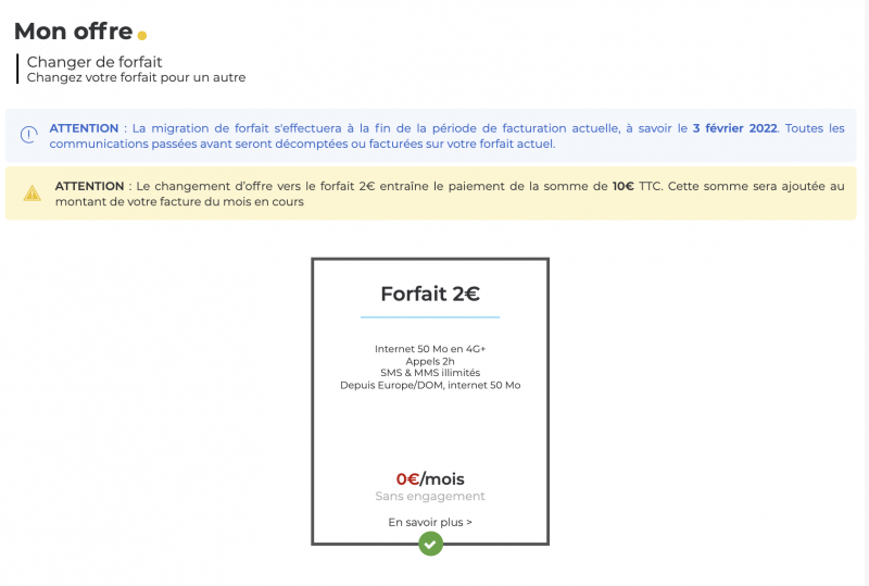 Migrer du forfait 2€ à celui à 19,99€/mois
