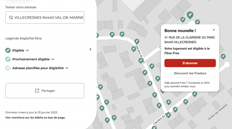 Plus de 4,5 millions d’abonnés fibre et 30 millions de prises raccordables en France, Free poursuit son engagement en faveur du déploiement de la la fibre sur tout le territoire avec la volonté d’être présent sur les réseaux déployés à l’initiative des collectivités, même à faible part de marché. C’est le cas sur le réseau Valofibre opéré par Xp Fibre dans le Val-de-Marne. Selon nos constatations, les quatre communes desservies par ce RIP sont éligibles aujourd’hui aux offres Freebox en fibre optique de Free. Il s’agit de Villecresnes, Santeny, Mandres-les-Roses et Perigny-sur-Yerres.