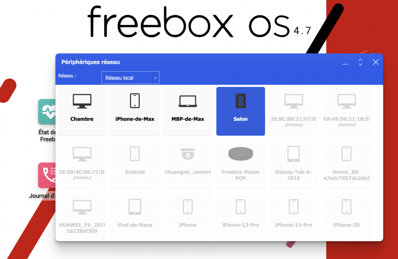 Prendre sur le fait un adolescent censé dormir au lieu de surfer sur Internet ou encore un voisin récemment dépanné continuant finalement d’utiliser votre connexion à Internet, Free permet de garder un oeil sur les appareils connectés à votre réseau. Deux possibilités s’offrent aux abonnés, l’application Freebox Connect disponible pour sur les smartphones Android et iOS, mais aussi l’interface de gestion Freebox OS, accessible depuis le navigateur Web à l’adresse http://mafreebox.freebox.fr/.