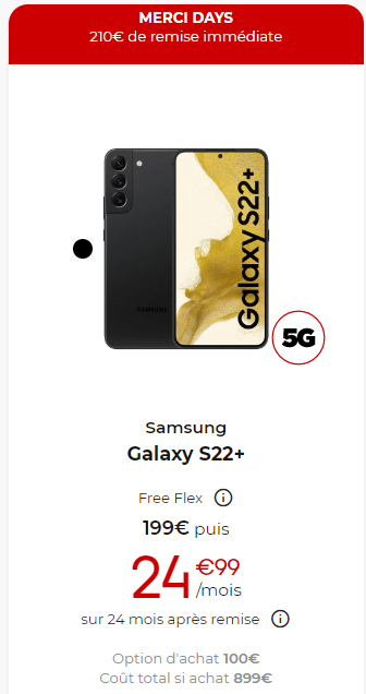 En paiement comptant, ce smartphone passe donc de 1109€ à 899€. A cela s’ajoute un bonus de reprise de 210€