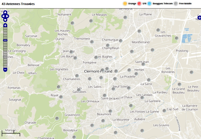 Découvrez la répartition des antennes mobiles Free 3G/4G sur Clermont-Ferrand