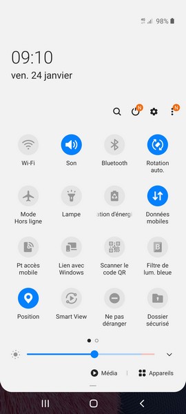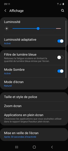 Avec les jolies couleurs de l’AMOLED, la définition Full HD+, la bonne luminosité et le choix d’un petit poinçon pour intégrer le capteur photo frontal, l’écran du Galaxy A51 est vraiment agréable à utiliser. Il offre également une bonne glisse. Notez qu’on pourra régler la chaleur d’affichage en allant dans les paramètres.