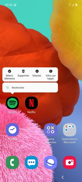 Le Galaxy A51 est livré avec quelques applications issues de partenariats commerciaux : Spotify, Netflix, Office, OneDrive, LinkedIn et Outook. La plupart peuvent être désinstallées.