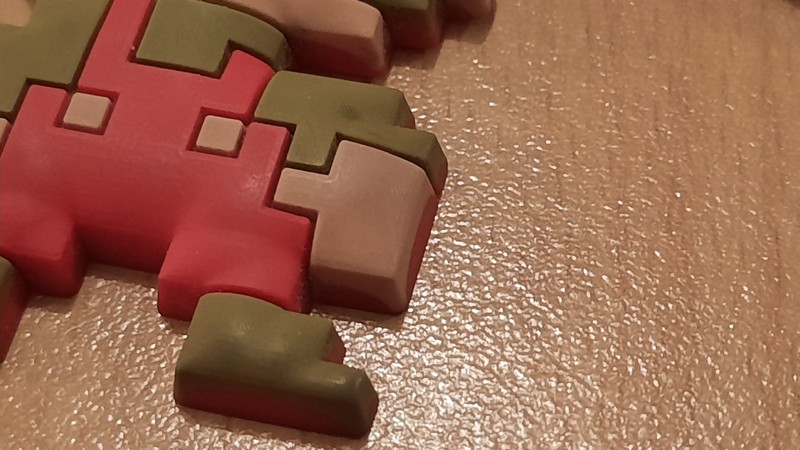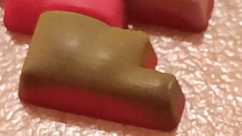 Un objet en intérieur, puis ses versions zoomées 3x et 8x :