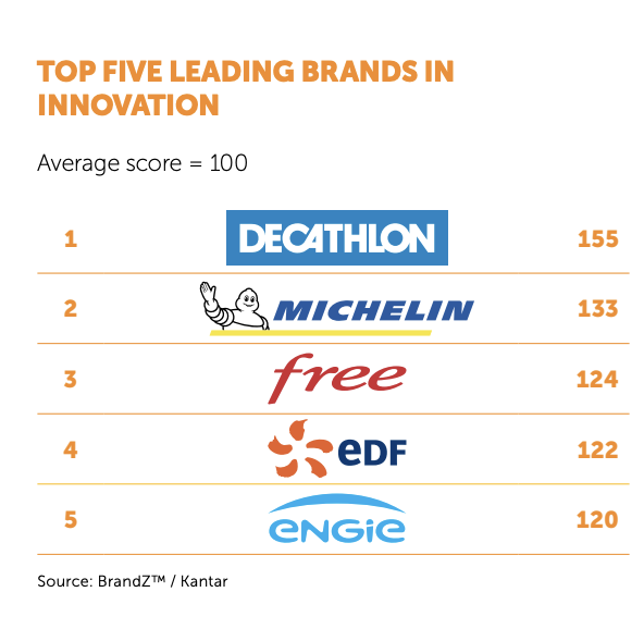 Et si l’on rentre dans le détail, dans le top 50 des marques françaises les plus puissantes, Free est la troisième marque la plus innovante derrière Décathlon et Michelin. Toute marque perçue comme développant quelque chose de nouveau attise forcément l’intérêt des consommateurs. L’innovation signifie ici développer un produit disruptif, fournir un service innovant ou se lancer sur un nouveau marché. “le lien entre l’innovation et l’attachement émotionnel, fait vraiment la différence”, précise Kantar.