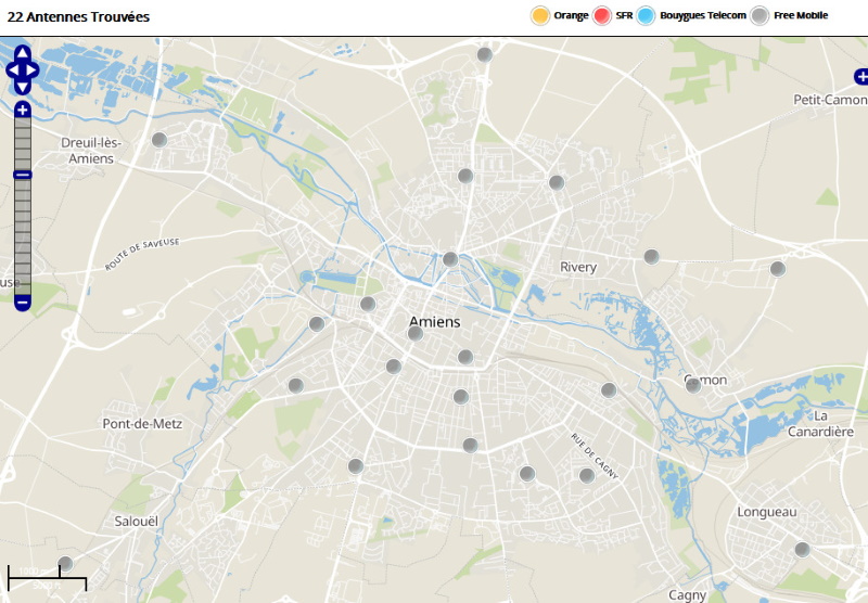Découvrez la répartition des antennes mobiles Free 3G/4G sur Amiens
