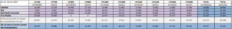 - Orange (28 999 sites, + 24 en janvier 2023) ;