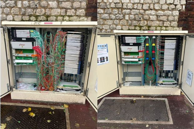 Un exemple concret dans la métropole de Rouen, dans les communes de Petit-Quevilly où XP-Fibre explique avoir rénové 26 des 30 armoires fibre de la commune. Ces dernières présentaient des branchements pour le moins chaotiques et la filiale d’Altice explique avoir du retirer tous les fils pour les remettre à la bonne place.