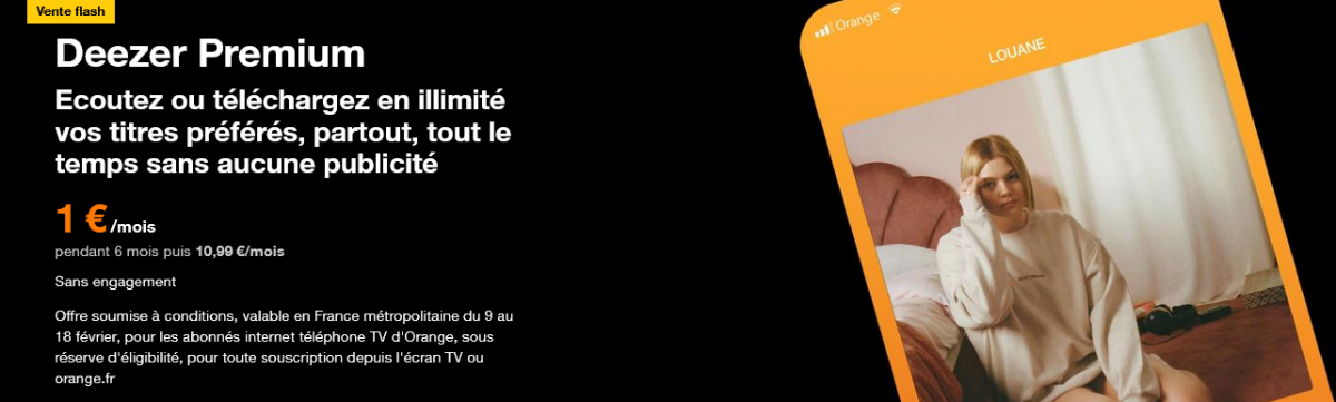Une nouvelle vente flash pour les abonnés de l’opérateur historique et de sa marque à bas prix. Dès aujourd’hui et jusqu’au 18 février, ils peuvent bénéficier de Deezer Premium pour 1€/mois pour une durée de six mois. Une fois la période promotionnelle terminée, l’offre repasse à 10.99€/mois mais vous pouvez résilier avant la date limite si vous le désirez, l’offre étant sans engagement.