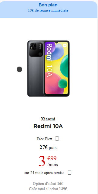 Le premier smartphone concerné est le Redmi 10A qui bénéficie d’une remise de 10€.
