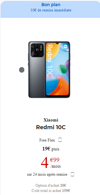 Le second smartphone concerné est le Redmi 10C qui bénéficie d’une remise de 10€.
