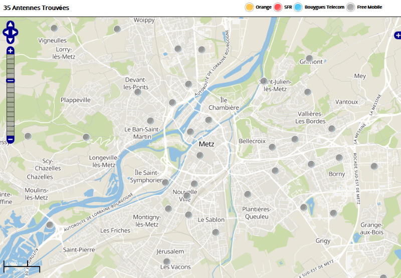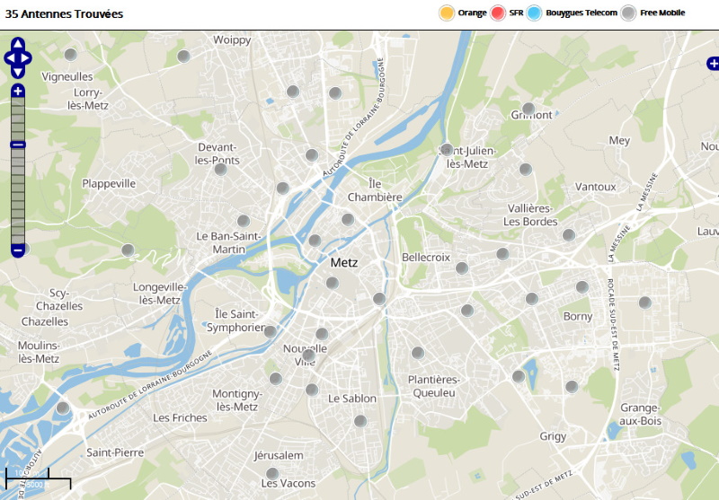Free a également implanté 24 antennes mobiles 3G dans la ville de Metz (antennes non-actives incluses).