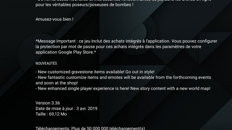 Certains noterons enfin que les informations sur la version, la date de la dernière mise à jour et le poids du téléchargement ne se trouvent plus reléguées en bas de la description. Elles ont pris en place tout en haut à droite.