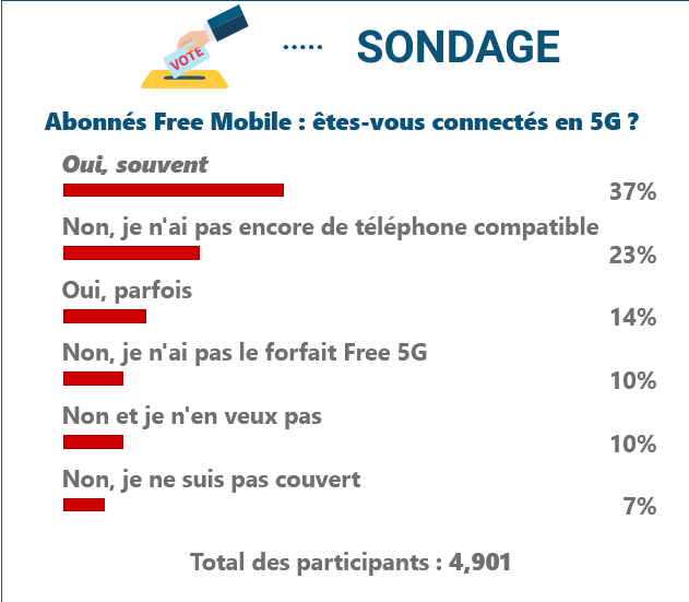 Univers Freebox s’est intéressé à l’accès à la 5G chez les abonnés Free Mobile et la majorité des sondés l’utilisent au moins occasionnellement.