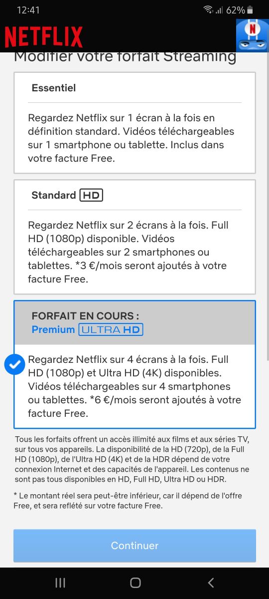 En octobre dernier, Free avait appliqué la hausse des tarifs l’abonnement Netflix (sauf le forfait essentiel qui est inclus). Mais en passant par le site de Netflix, l’augmentation n’apparaît pas et pourtant elle est bien appliquée