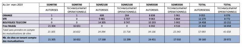 Il est temps de faire le point comme tous les mois sur le déploiement de la 5G en France. Au 1er mars, avec 16 658 sites, Free Mobile apparaît toujours largement en tête au classement général grâce au déploiement massif de la bande 700 MHz bien que le mois dernier l’opérateur n’a activé que 48 supports sur cette fréquence, un déploiement de plus en plus ralenti, il faut dire qu’il couvre déjà plus de 87% de la population grâce à cette bande.