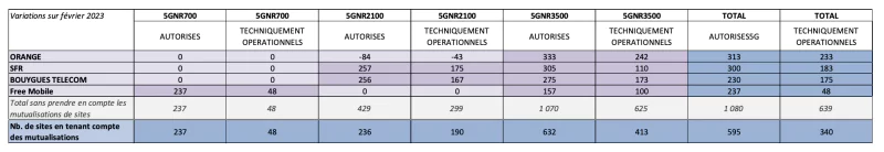 L’ANFR dévoile son observatoire mensuel du déploiement des réseaux 5G des opérateurs pour le mois de février 2023. Orange, Bouygues Telecom et SFR sont toujours dans un mouchoir de poche sur la bande 3,5 GHz, mais l’opérateur historique prend la tête. Free Mobile ne redresse toujours pas la barre sur cette bande mais reste devant toutes fréquences confondues.