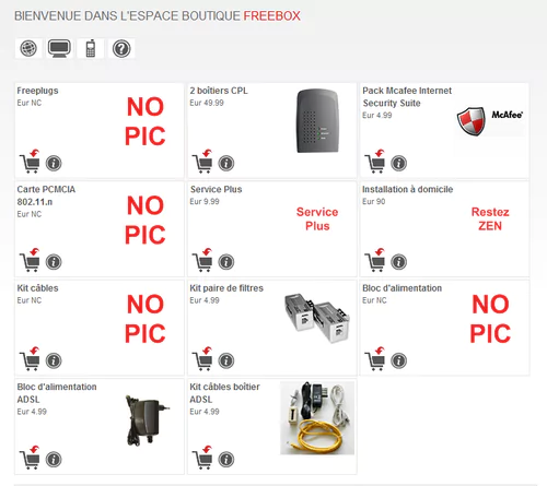 En passant, Free en a profité pour intégrer ses services en options (Service Plus, Pack Mcafee) avec les accessoires proposés pour une meilleure visibilité.