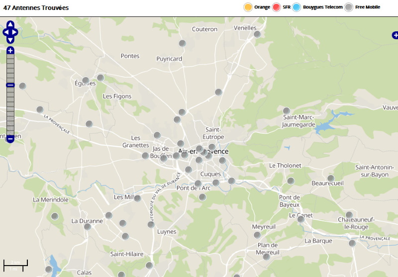 Découvrez la répartition des antennes mobiles Free 3G/4G sur Aix-en-Provence