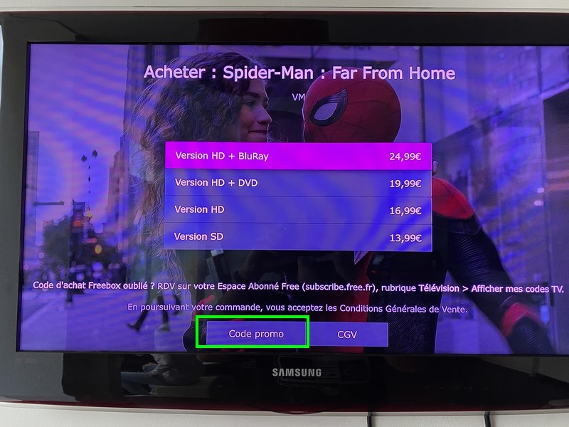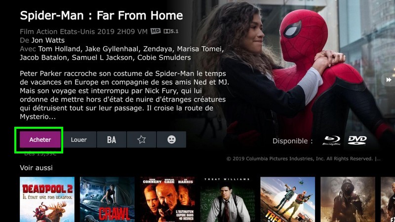 Une fois dans la fiche du film, appuyez sur le bouton Acheter.