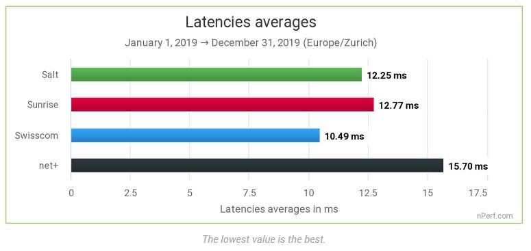 Concernant la latence, c’est le point où Salt pêche et ne se retrouve que deuxième avec un ping moyen de 12.25ms derrière Swisscom avec 10.49 ms.
