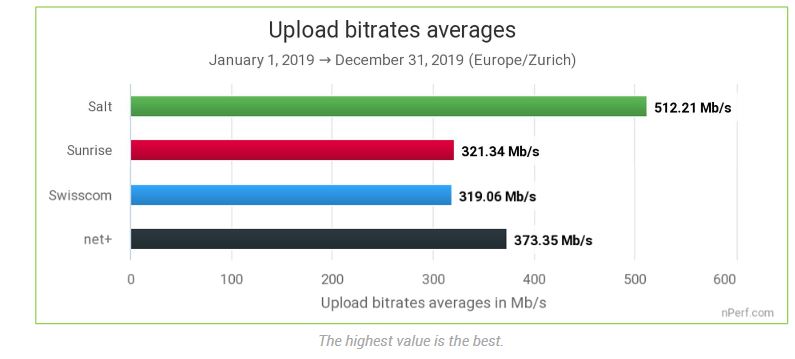 L’écart et quasiment le même concernant l’upload, où l’opérateur de Xavier Niel propose 512.21 Mb/s contre 373.35Mb/s pour net+, le deuxième du classement hélvète.
