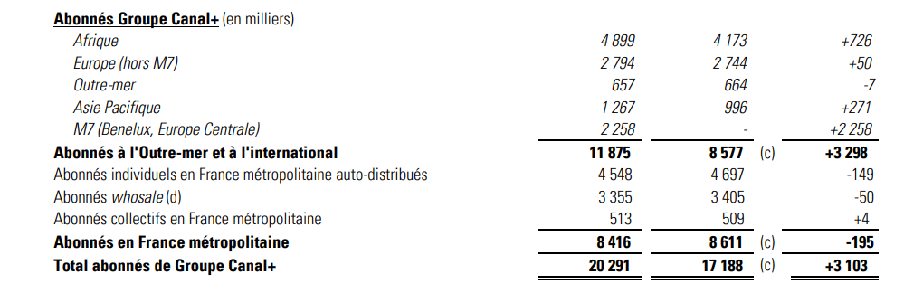 Malgré, l’hémorragie d’abonnés persistante continue d’impacter négativement les comptes de la filiale de Vivendi en France. Le chiffre d’affaires de la télévision en France métropolitaine recule légèrement de 2,8 % à taux de change et périmètre constants “en raison de la baisse du portefeuille d’abonnés individuels auto-distribués”, concède le groupe.