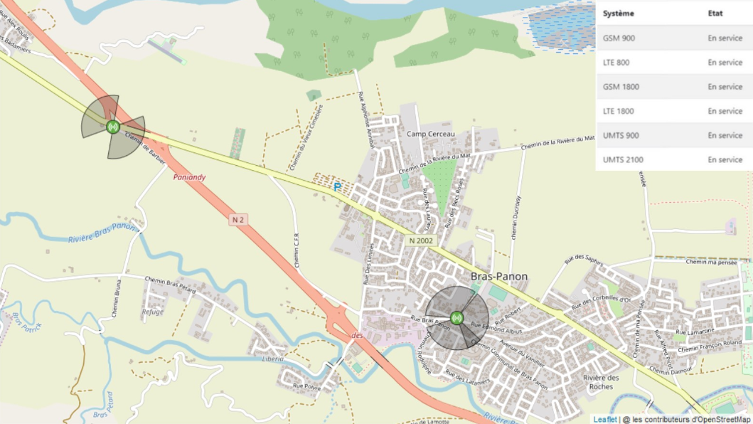 Découvrez la répartition des antennes Free Réunion 3G/4G sur Bras Panon