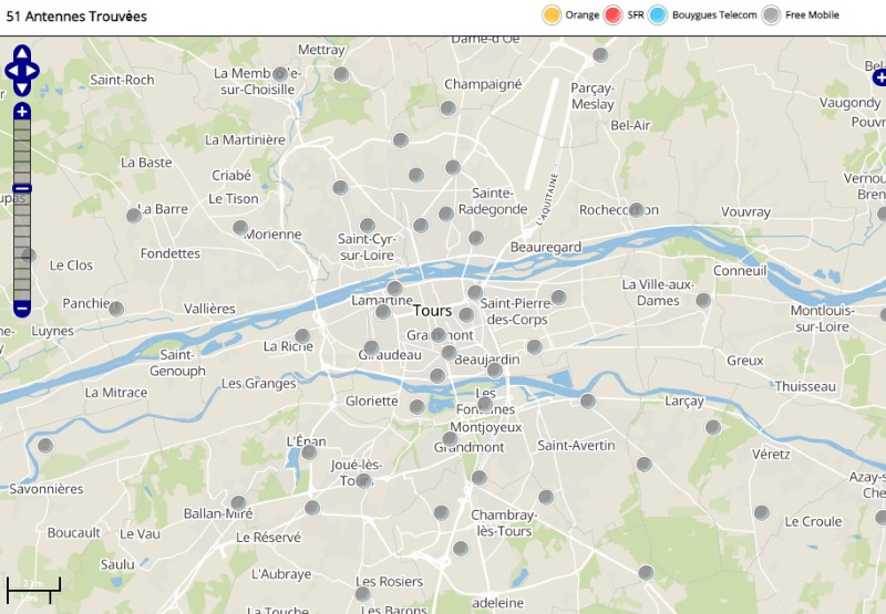 Free a également implanté 18 antennes mobiles 3G dans la ville de Tours (antennes non-actives incluses).