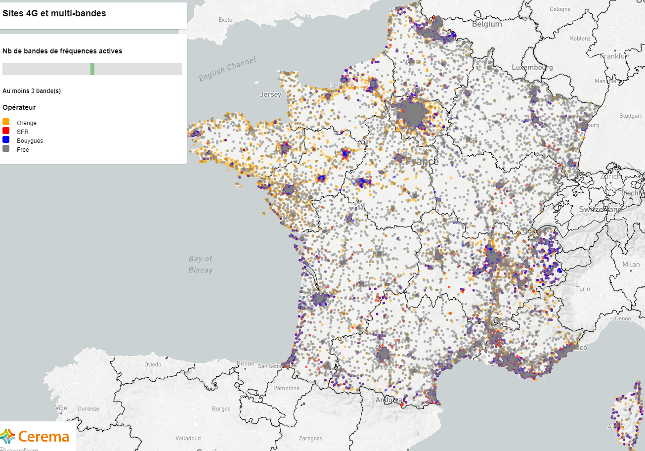 Passons maintenant à la carte des sites 4G++ de chaque opérateur :