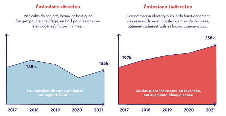 Cependant, en s’attardant sur les détails de cette étude, on peut observer un contraste assez important entre les émissions directes provenant des véhicules de société, de l’exploitation des boutiques ou des locaux professionnels et les émissions indirectes qui concernent surtout la consommation électrique des réseaux, des centres de données ou autres bâtiments administratifs ou commerciaux.