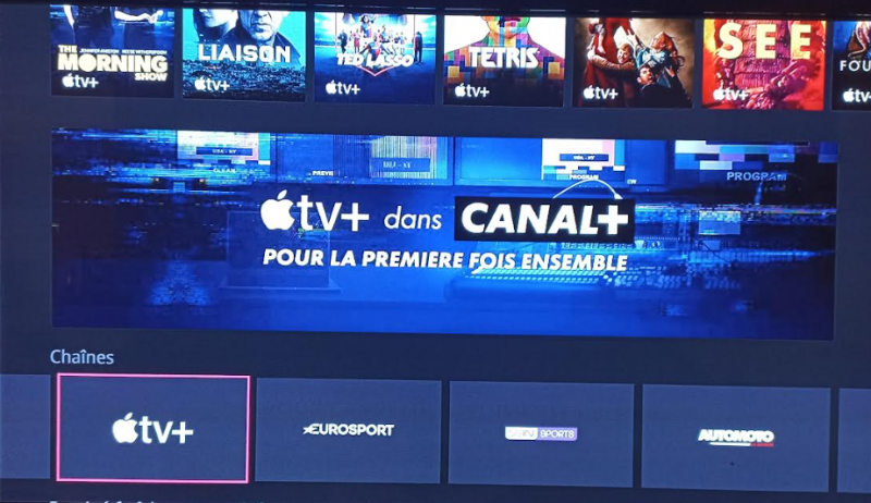 Pour y accéder, il suffit aux abonnés Canal+ de se rendre dans Freebox replay et de choisir le service “Canal+”. Sur l’interface de ce dernier, une sélection de contenus issus d’Apple TV+ est proposé, et un accès direct à l’interface Apple TV+ a été ajouté dans la rubrique “chaînes” et également via un bandeau annonçant l’arriver du service de streaming d’Apple.