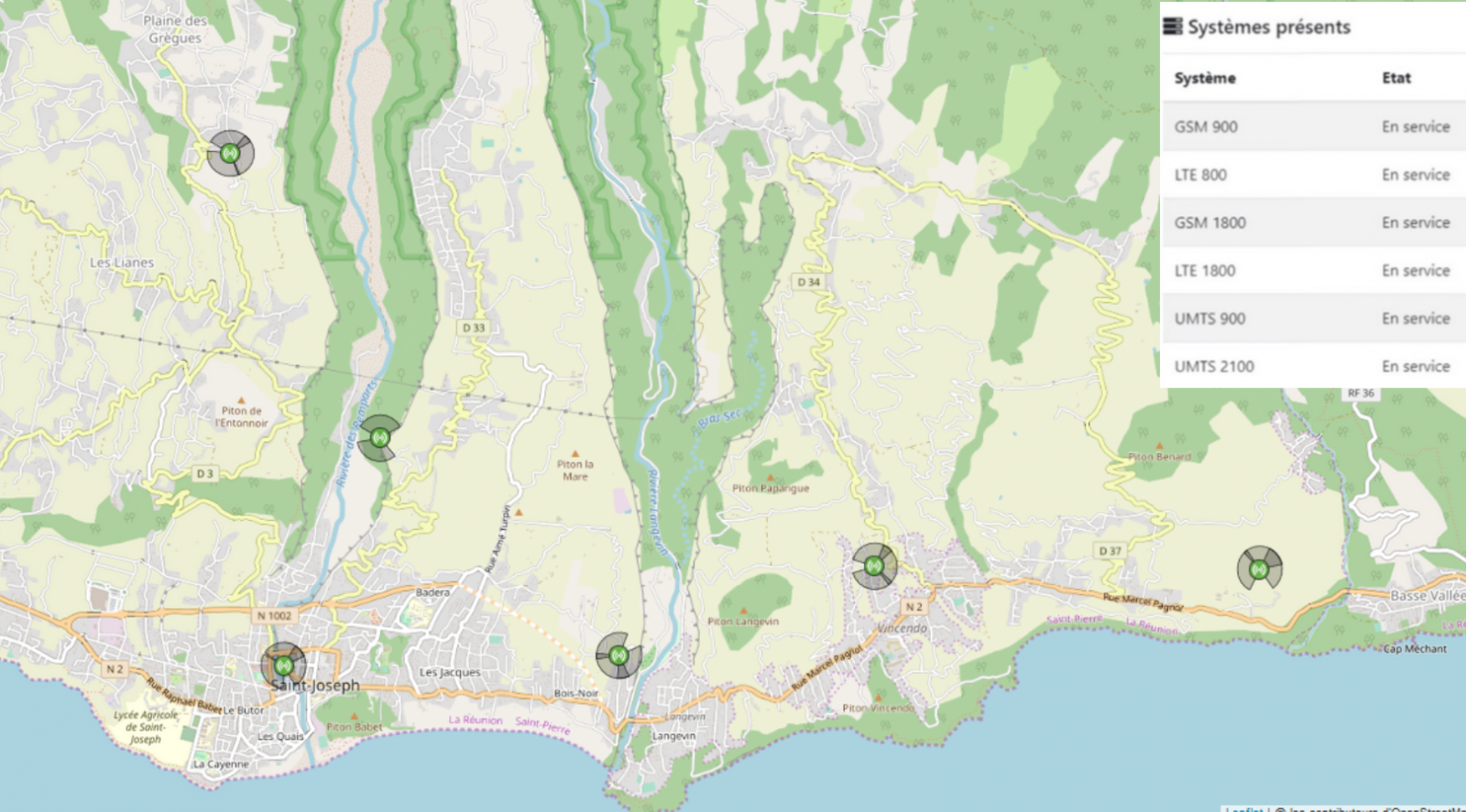 Découvrez la répartition des antennes Free Réunion 3G/4G à Saint Joseph
